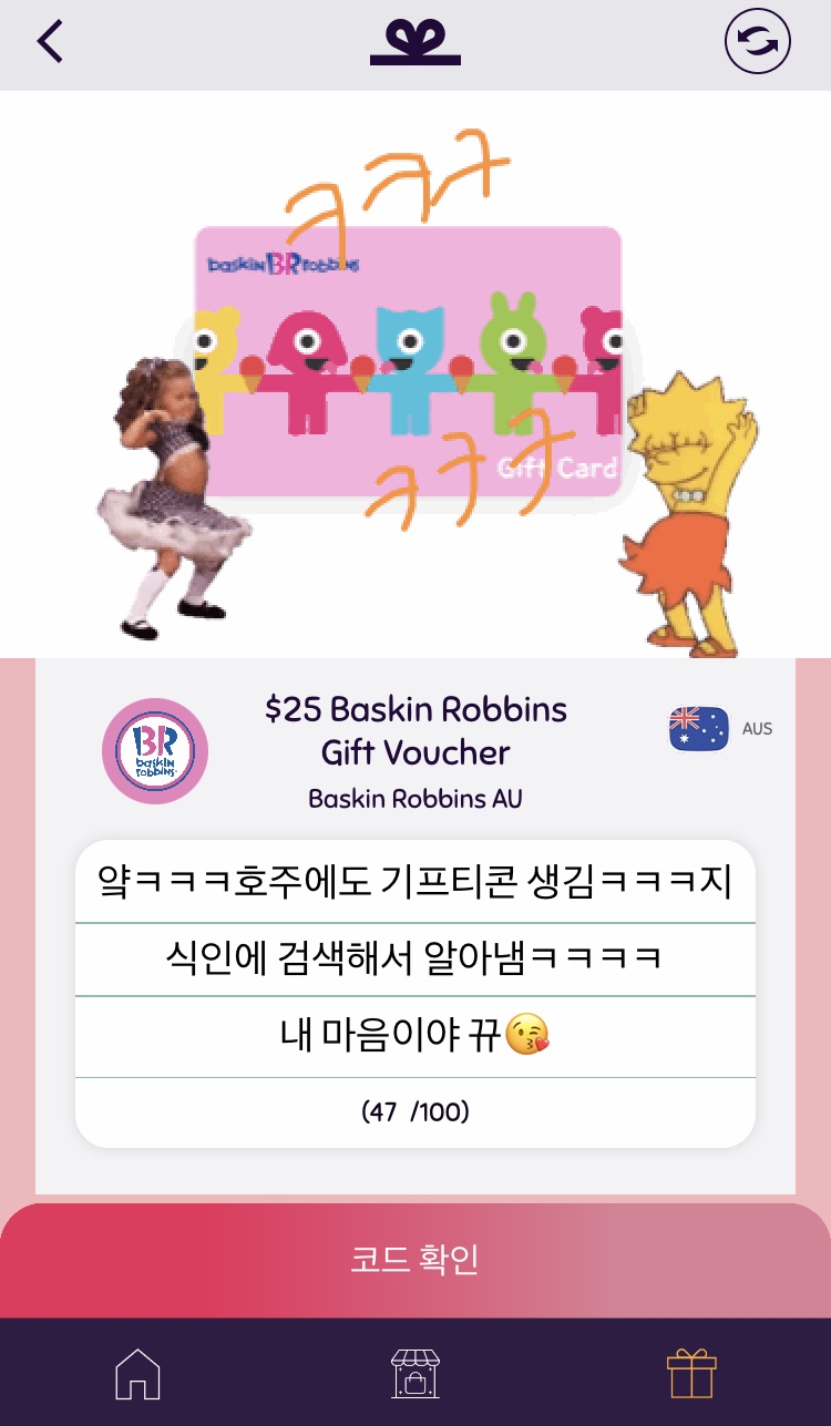 드디어 호주에도 기프티콘 생겼네여!!!!