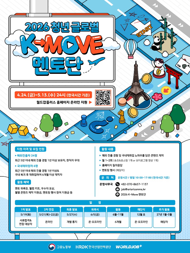 [한국산업인력공단] 2026 청년 글로벌 K-MOVE 멘토단 모집! (~5/13)