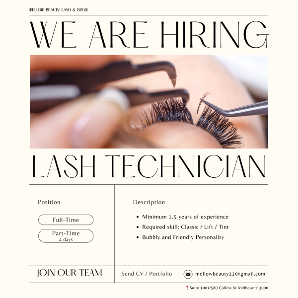 Mellow Beauty에서 속눈썹 테크니션을 모집합니다.
