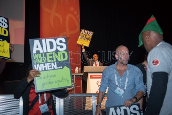 수천 명의 과학자, 운동가, 저널리스트들이 참석한 가운데 진행된 그의 연설은 HIV와 AIDS 퇴치 기금 마련을 위해 금융거래에 ‘로빈후드’(Robin Hood) 세금을 부과하자는 내용의 플래카드를 든 시위대 탓에 잠시 중단되기도 했다. 그는 이번 회의가 콘퍼런스지만 실제로는 하나의 운동이라고 생각한다며 그렇기에 누군가 일어나 자신의 주장을 말하는 것은 당연하다며 많은 이들을 수긍시켜 주기도 하였다.